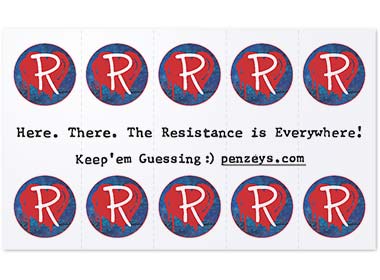 Postcard-mailing season is almost upon us, and these little Resist! stickers will add some punch to your message. They're also great for adding some flair to your lapel, laptop, backpack, and lunch bag. The stickers come in a sheet of ten and are 3/4 inch in diameter. Long live the Resistance.