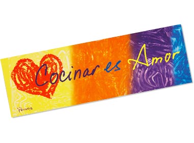 Spread the word that cooking is love with this bright, fun Cocinar es Amor bumper sticker. Measures 11 1/2'' by 3 3/4''.