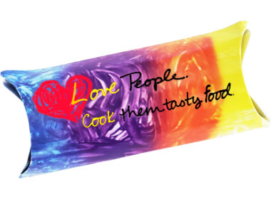 Looking for a little gift for someone special? Our rainbow-colored sleeves are the answer. Not only are they eye-catchingly colorful, they share the message of Love People, Cook Them Tasty Food. Each sleeve holds either one half-cup jar or two quarter-cup jars (not included). Perfect for introducing people to your favorite blends or spices.